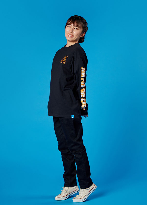 左胸のGood Luck Have Funの刺繍がポイントです。